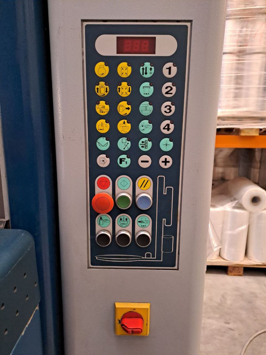 Folienschlitten mit motorisiertem Vorstrecksystem. Das Vorstreckverhältnis ist über das Bedienfeld
